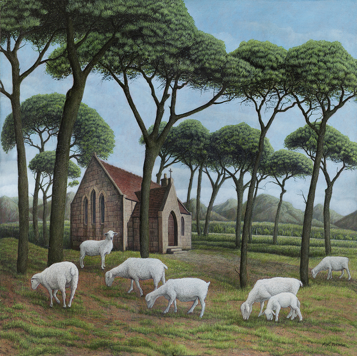 By Marc Alexander from his ‘Dreams of an Enchanted World’ exhibition. Spring, oil on canvas, 100cm by 100cm, (2019).